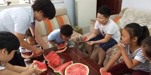 这场吃瓜比赛分为两个环节:吃瓜速度比拼和吃瓜创意展示。